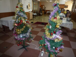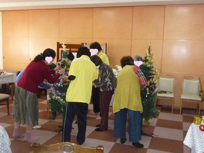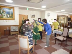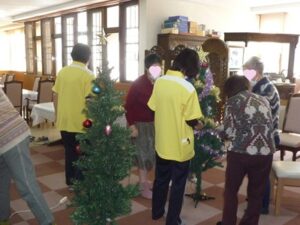 フォーシーズンズまつやま クリスマス🎄飾りつけ 今日12月5日は クリスマス🎄の飾りつけです。 入居後初めての方も含め、 参加は8名でした。 手際よくオーナメントが飾りつけされていきます。 ついに立派な2つのツリーが完成❣ 飾り付けのあとは、コーヒータイム❣ 皆様お疲れ様でした。
